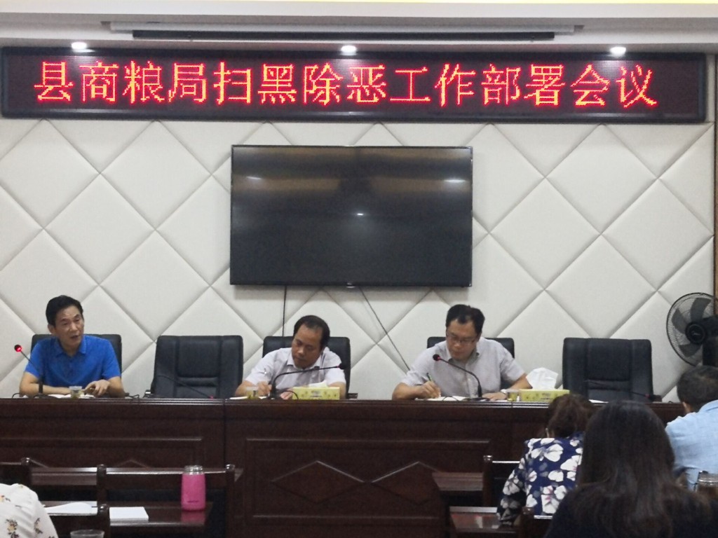 会上,包喜林组织学习省市县下发的扫黑除恶专项斗争文件精神,并就扫黑除恶专项斗争进行动员和部署。陈代陆就扫黑除恶工作强调了三点意见:一是高度认识扫黑除恶专项工作的重大意义。全局上下要坚决贯彻落实中央和省市县开展扫黑除恶专项斗争的决策部署,充分认识扫黑除恶专项斗争工作的重要意义,加强商务和粮食系统扫黑除恶专项斗争工作的开展,确保扫黑除恶专项斗争取得实效。二是抓住重点,把扫黑除恶工作落到实处。各二级机构和各股室要提高政治站位,将扫黑除恶摆到工作的突出位置来抓,认真研究解决扫黑除恶专项斗争的工作问题。各二级机构、各股室负责人为商务和粮食领域扫黑除恶专项斗争第一责任人,全体参加专项斗争人员要知责明责、履职尽责,勇于担当,敢于作为,特别是商务和粮食系统成品油和商贸流通领域,关乎到群众的切身利益,群众关注度高。商务和粮食执法大队要加大执法检查力度,将执法检查中发现的涉黑涉恶线索及时向公安机关通报,积极支持配合公检法等政法机关开展扫黑除恶专项斗争。三是切实加强领导。局里成立了扫黑除恶专门领导班子,由刘学林副书记负责全局扫黑除恶专项工作。各股室之间要加强配合,主动承担好扫黑除恶专项斗争中的职责任务,依法行政、依法履职,强化对成品油、商贸流通等工作的监管。要对成品油、商贸流通工作进行一次详细的大排查、大梳理。要把排查出来的问题线索该移交给政法机关和有关部门处理及时移交,该整改的问题必须进行整改落实。同时,还要营造宣传氛围,要按照上级的部署将横幅标语张贴悬挂到位。广泛动员商务和粮食系统干部职工积极投身扫黑除恶专项斗争,宣传发动广大群众参与到扫黑除恶专项斗争中来。用三年的时间,在党中央的坚强领导下,坚决打赢扫黑除恶的人民战争。