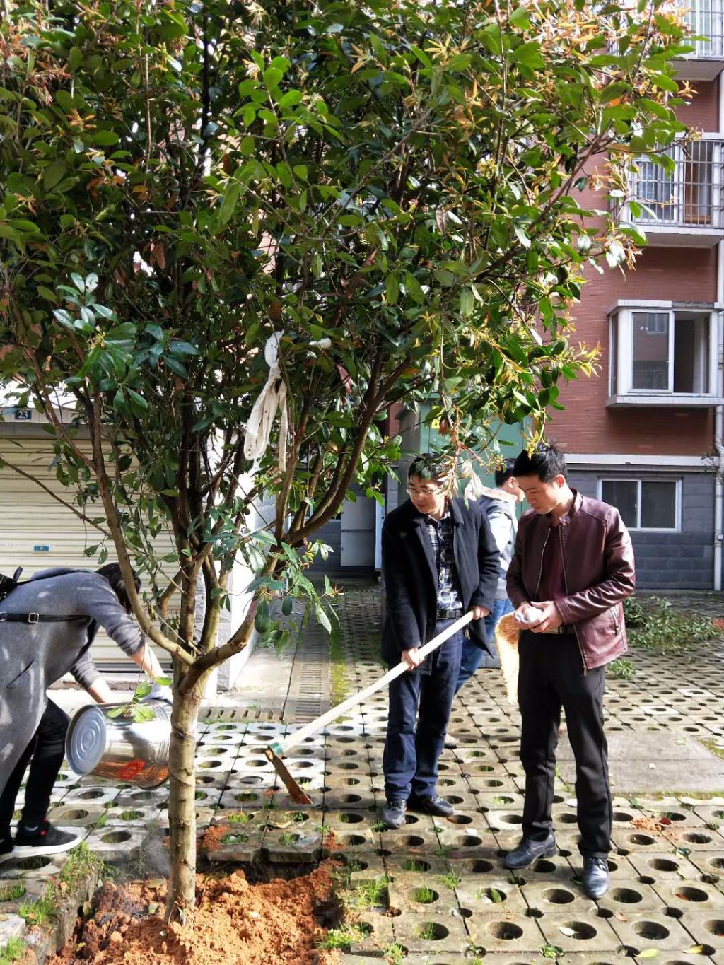 整整一上午,党员佩戴党员党徽,与干部职工一道抬树、挑土、培土、栽树、浇水,共计栽培樟树、桂花树、红叶石兰102棵,所栽树都挂上了植树责任牌,将植树者和植树时间予以公示,确保栽树质量。