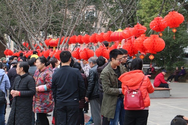 下午2点,近千个灯谜挂在了伏波广场上,在文化志愿者的引导下,不少市民争先恐后地揭谜底抢答。同时,元宵姑娘向市民派送象征团圆美满的元宵。
