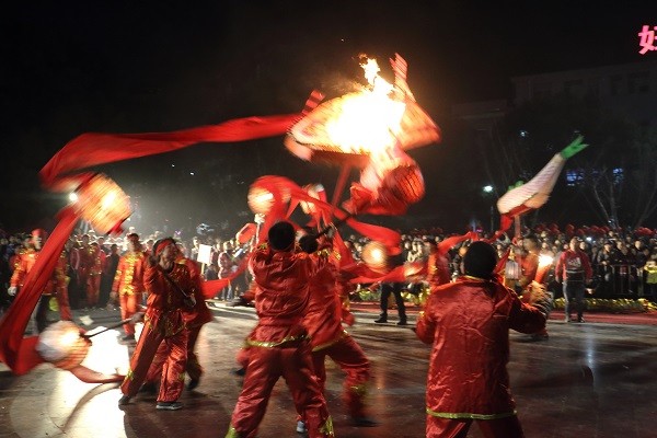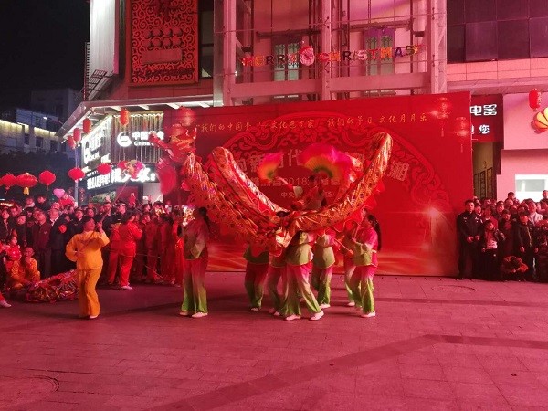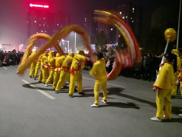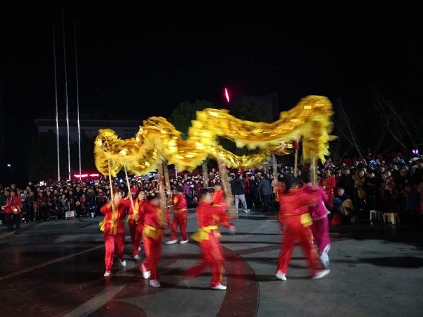 晚上7点,九条祥龙在县城渌口四个广场奔腾起舞,更有一条火龙带着兴旺的火焰熊熊燃烧,为市民送去祥瑞和祝福。