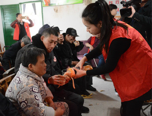志愿者们来到敬老院,通过陪老人聊天、看花鼓戏,给老人剪指甲、理发,打扫院内卫生,动手制作汤圆等方式,提前陪老人们过了一个欢乐祥和的元宵佳节,受到老人们和周围群众的一致好评。