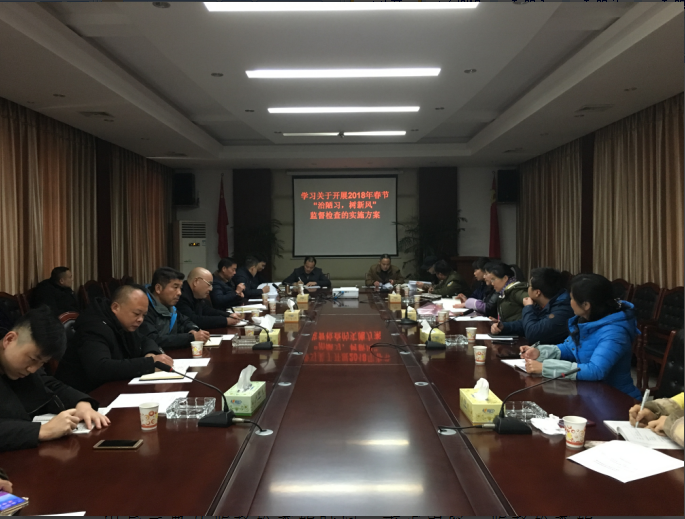 2018年1月31日,县交通局副局长田红军组织局全体干部职工学习《关于开展2018年春节“治陋习、树新风”监督检查的实施方案》。
