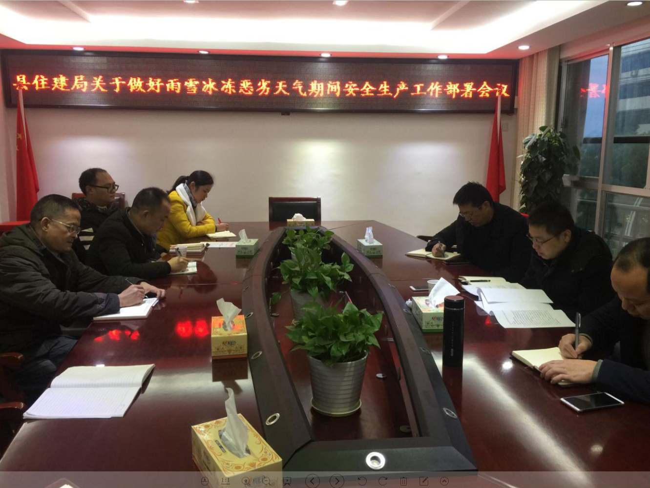近期低温雨雪冰冻天气来临,县住建局1月24日召开安全生产工作部署会,要求各行业领域积极采取应对措施,确保行业安全生产,百姓安全生活。