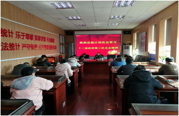 1月9日,株洲县统计局召开全局干部职工会议,传达学习县委十届五次全会和县政府十二届三次全会会议精神。