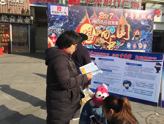 为深入学习贯彻党的十九大精神、不断加强和改进新时代110接处警工作,全面宣传110在打击违法犯罪活动、维护社会治安秩序、保障人民生命财产安全等方面发挥的显著作用,1月10日上午9点-11点,株洲县公安局在渌口镇中央时代广场开展了以“110守护新时代美好生活”为主题的集中宣传活动。指挥情报中心、交警大队、消防大队及巡特警大队参加了宣传活动。