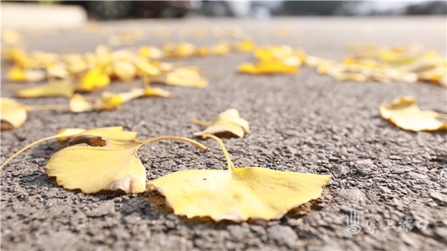 每到秋季,高大的银杏树开始落叶,洋洋洒洒的银杏叶随风飞舞、旋转、落下,地上铺满明亮的金色。