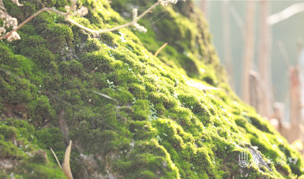 树根背阳处爬满青苔,近期细看,有的好似丘陵起伏,有的好似层峦叠嶂。