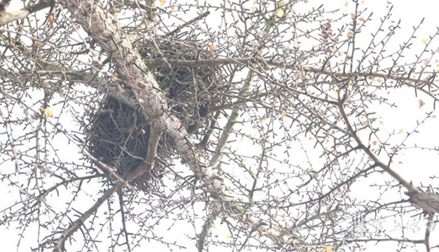 最高的树枝顶上还有一个大大的鸟巢,巢的“主人”却不见了踪影。