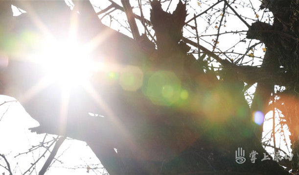 最中间的一枝树芯已经空了,透过空洞能够看到天空,但枝头任然还在生长。