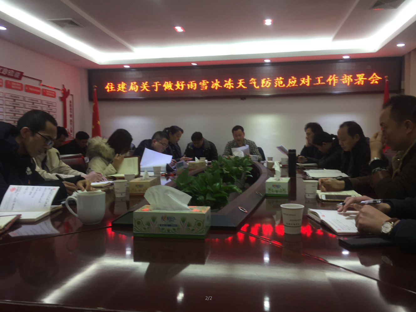 1月5日,县住建局召开了关于做好雨雪冰冻天气防范的工作部署会。县住建局全体班子成员、各股室负责人、自来水公司、县市政公司、祝平液化公司、恒福液化气有限公司、新奥燃气公司负责人参加了会议。