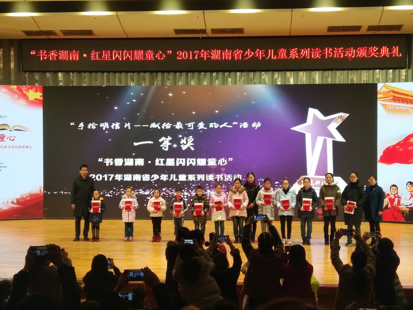 12月16日上午,由湖南省委宣传部、省文明办、省文化厅、省教育厅、省新闻出版广电局、共青团湖南省委、省妇联、省关心下一代工作委员会共同主办,省少年儿童图书馆承办的“书香湖南·红星闪闪耀童心”2017年全省少年儿童系列读书活动颁奖典礼暨阅读成果展示在湖南音乐厅举行,株洲县图书馆荣幸代表株洲地区参与了此次颁奖典礼。此次活动株洲县成绩斐然,选送作品荣获一等奖1名,三等奖4名,优胜奖3名,暑期“阅读笔记达人”1名。