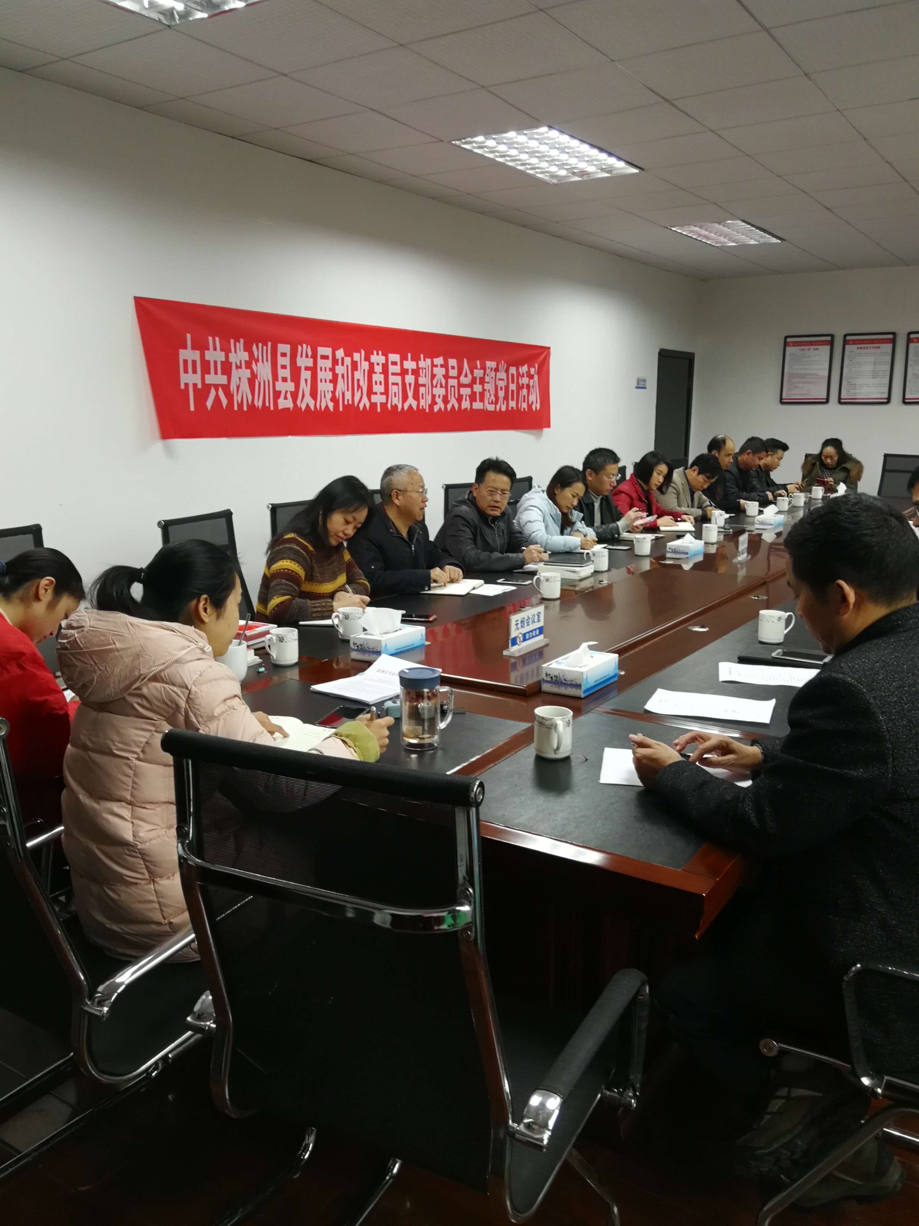 12月16日,株洲县发改局支部召开12月份支部主题党日活动,开展党的十九大精神学习,同时安排部署扶贫工作。
