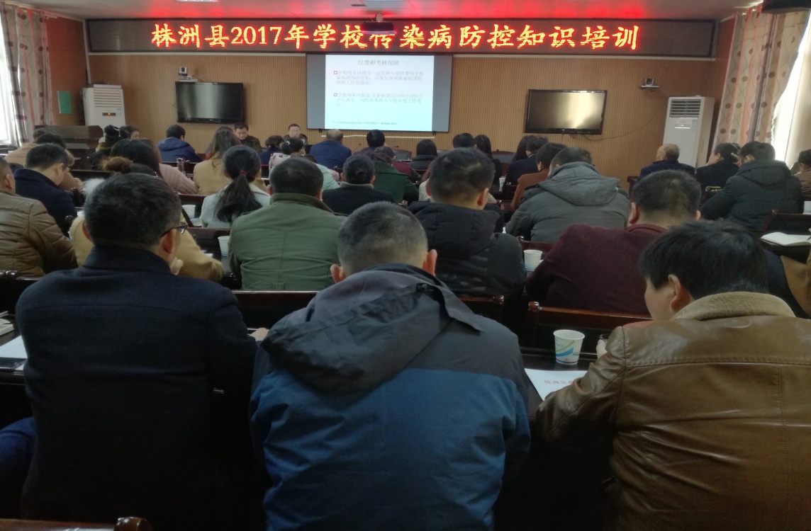 12 月10日上午,株洲县教育局、卫生局联合召开学校传染病防控知识培训会。县教育局基教股股长刘林满、县疾控中心副主任向玉良、传染病控制科科长晏涛、各镇中心学校负责传染病防控工作副校长、各镇中心幼儿园园长、全县所有学校传染病防控工作管理人员参加了会议。