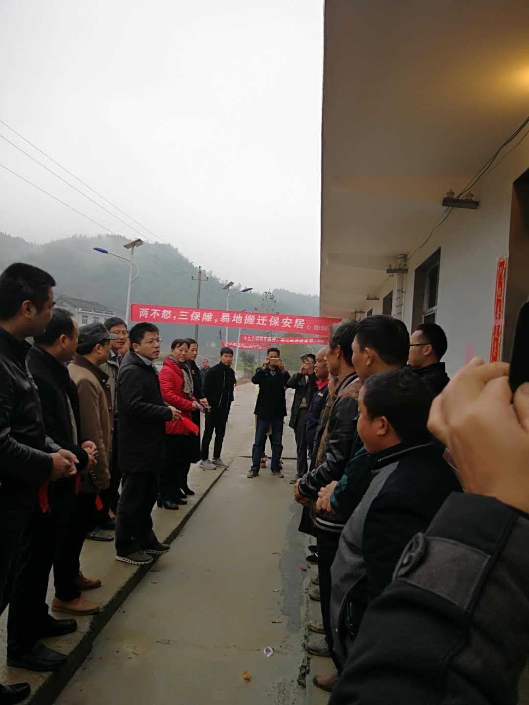 2017年11月20日,农历十月初三,株洲县委常委、统战部长刘奇伟率县发改局、国土局、扶贫办、龙门镇政府、市县帮扶工作队等单位负责人到龙门镇花冲村易地扶贫搬迁集中安置点参加9户易地扶贫搬迁对象正式入住新家搬迁仪式。