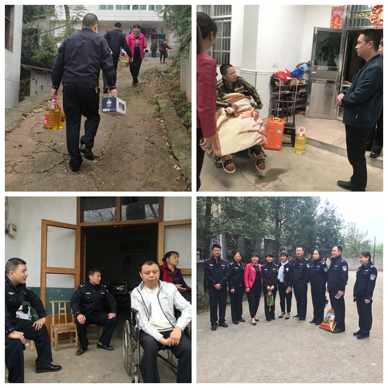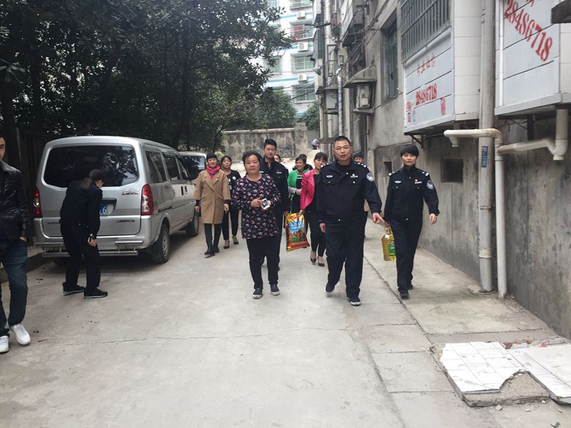 向阳社区书记刘旭花一行陪同各支部党员民警先后来到了贫困户刘晶晶、邓金花、廖书菊及何春芳的家中,与他们进行了亲切交谈,详细了解了他们家的生活、身体状况,鼓励他们以积极的心态乐观的面对生活,坚定信心。并为他们送去了米、油、牛奶等慰问品。