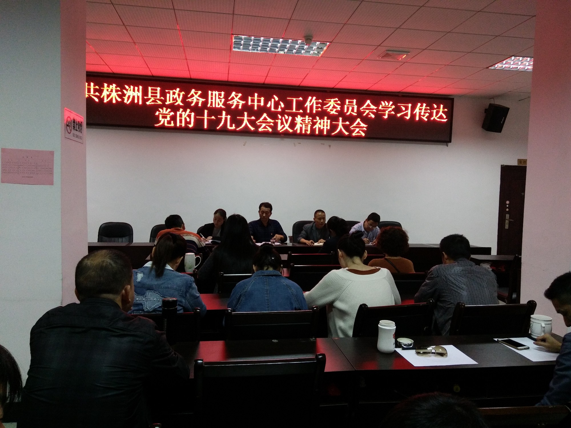 11月2日下午,株洲县政务服务中心党工委召开传达学习党的十九大精神大会。罗胜利主任主持会议。全体工作人员参加学习。党工委书记肖金龙传达了党的十九大主要精神,重点传达学习了习近平同志代表十八届中央委员会所作的工作报告、十八届中央纪律检查委员会工作报告和《中国共产党章程(修正案)》主要内容。