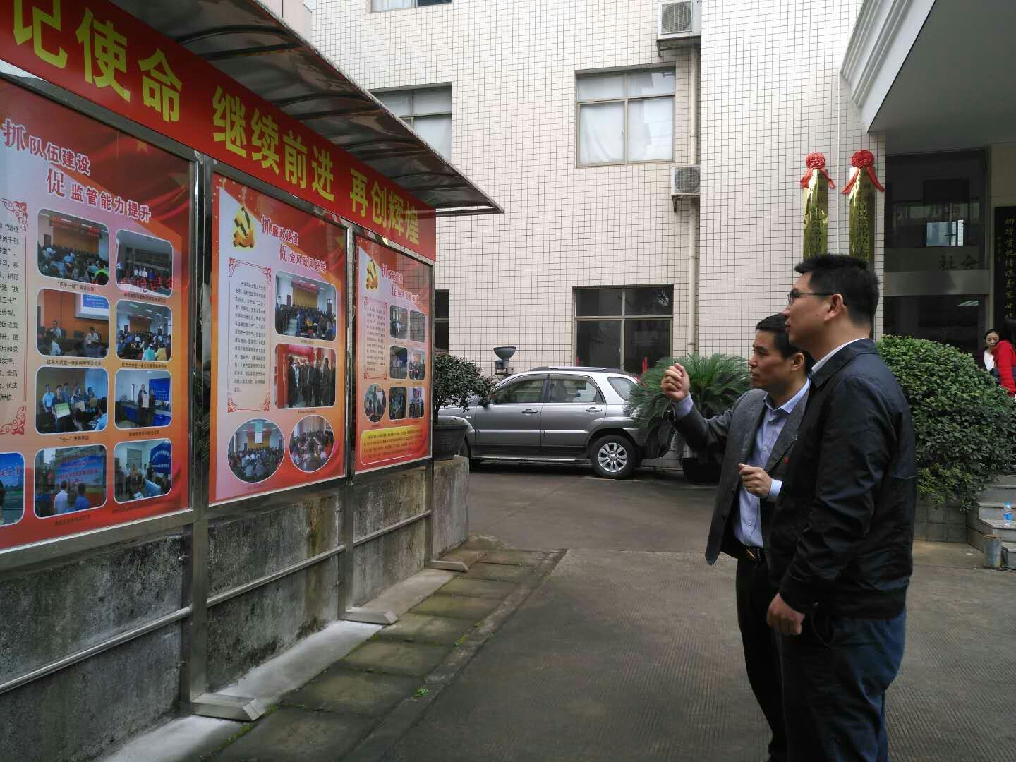 县食药工商质监局党委书记、局长罗铁纯带领谭部长一行实地参观了室外宣传栏、党务公开栏、局务公开栏、党员学习室、党员活动室、支部活动室等。