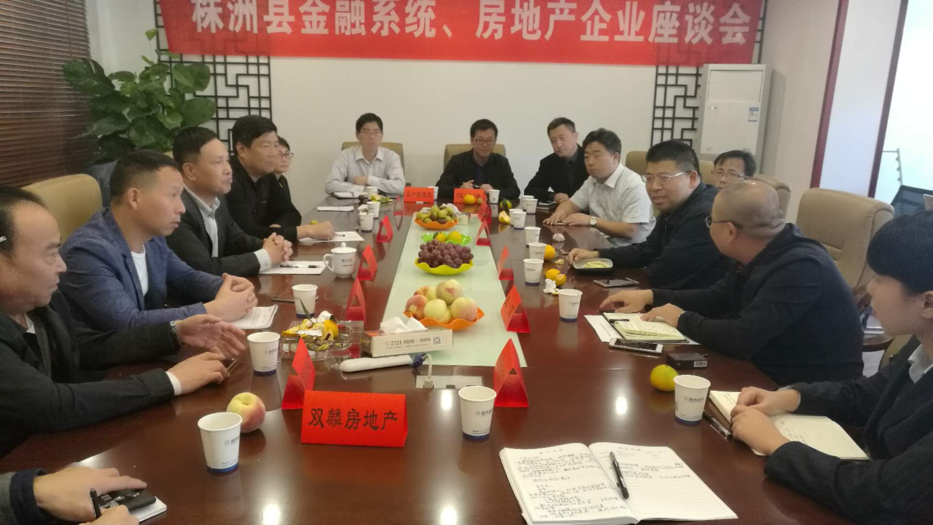 10月27 日,株洲县金融系统、房地产企业座谈会在上景房地产有限公司会议室举行。县工商银行渌口支行、建设银行渌口支行、县信用联社3家银行,上景房、大西洋、瑞和、大西洋、广嘉、双麟、顺凯利6家房地产开发有限公司,县政府办、金融办、房产局3个职能部门参加座谈,吴宏亮副县长出席会议。