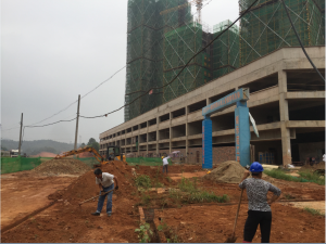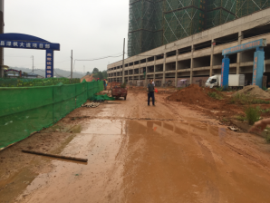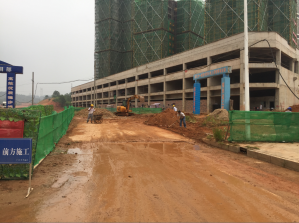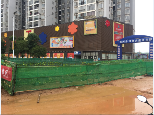 2017年9月20日下午15:00,上景领秀时代对责任辖区场地进行平整,并着手搭设责任区域分界围挡(见下图):