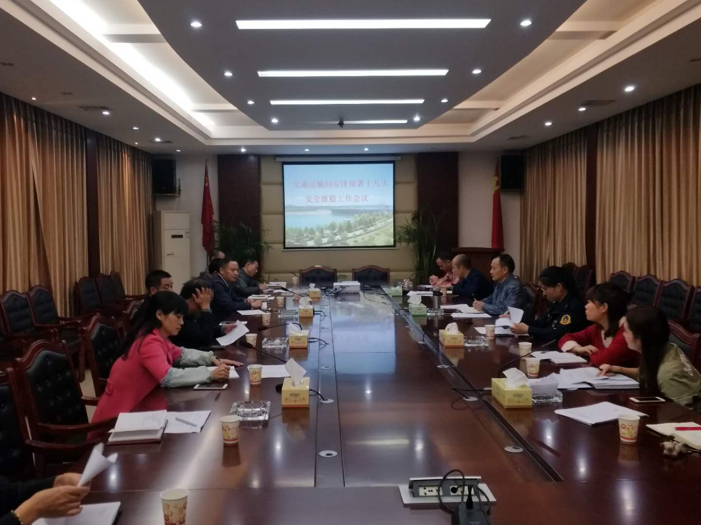 10月20日下午,株洲县交通运输局召开全系统做好党的十九大期间维稳安保等重点工作会议。会议强调,要深入学习贯彻习近平总书记系列重要讲话精神和治国理政新理念新思想新战略,全力以赴做好信访稳定、安全生产等工作。局党委书记、局长张高峰主持会议。