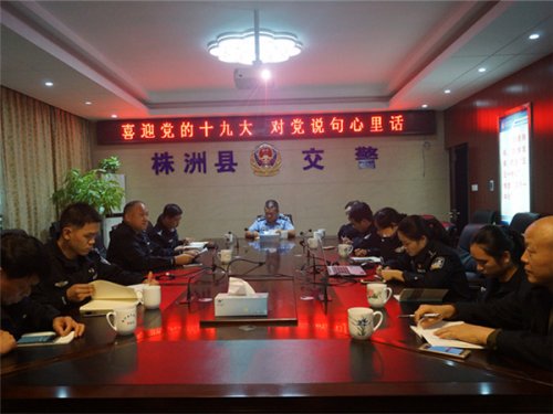 10月12日下午,株洲县大队第一支部召开“喜迎党的十九大对党说句心里话”专题学习座谈会议。县公安局副局长、交警大队长罗伟、纪检组长易四清出席会议,会议由支部书记楚裕主持,支部全体党员参加了会议。