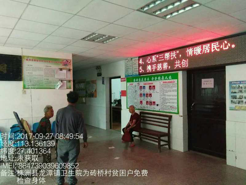 为助力脱贫攻坚工作,将党和政府的关怀送到贫困群众身边,9月27日上午,龙潭镇卫生院对砖桥村贫困户进行免费健康体检。