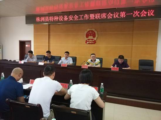 会议首先观看了我县特种设备应急救援系统建设情况的专题片,县食药工商质监局党委委员、副局长叶舜尧宣读了《株洲县人民政府关于进一步加强特种设备安全工作的意见》。株洲县特种设备联席会议召集人、县食品药品工商质量监督管理局党委书记、局长罗铁纯作了工作报告。