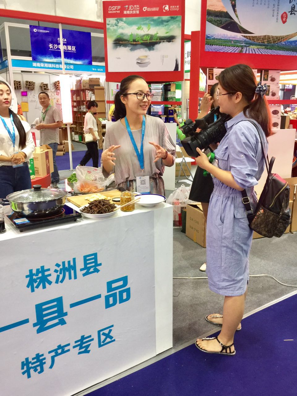 株洲县商粮局组织湘春、银丹、辣椒妹等农业品牌进驻2017中国食品餐饮博览会电商扶贫特别展区,开展美丽渌湘,“蕨”代双“椒”专场活动。株洲县一县一品专区获黄芳副市长高度评价,参展企业也各显特色,吸引了来自全国各地的采购商前来洽谈,受到各地参观观众的一致好评。