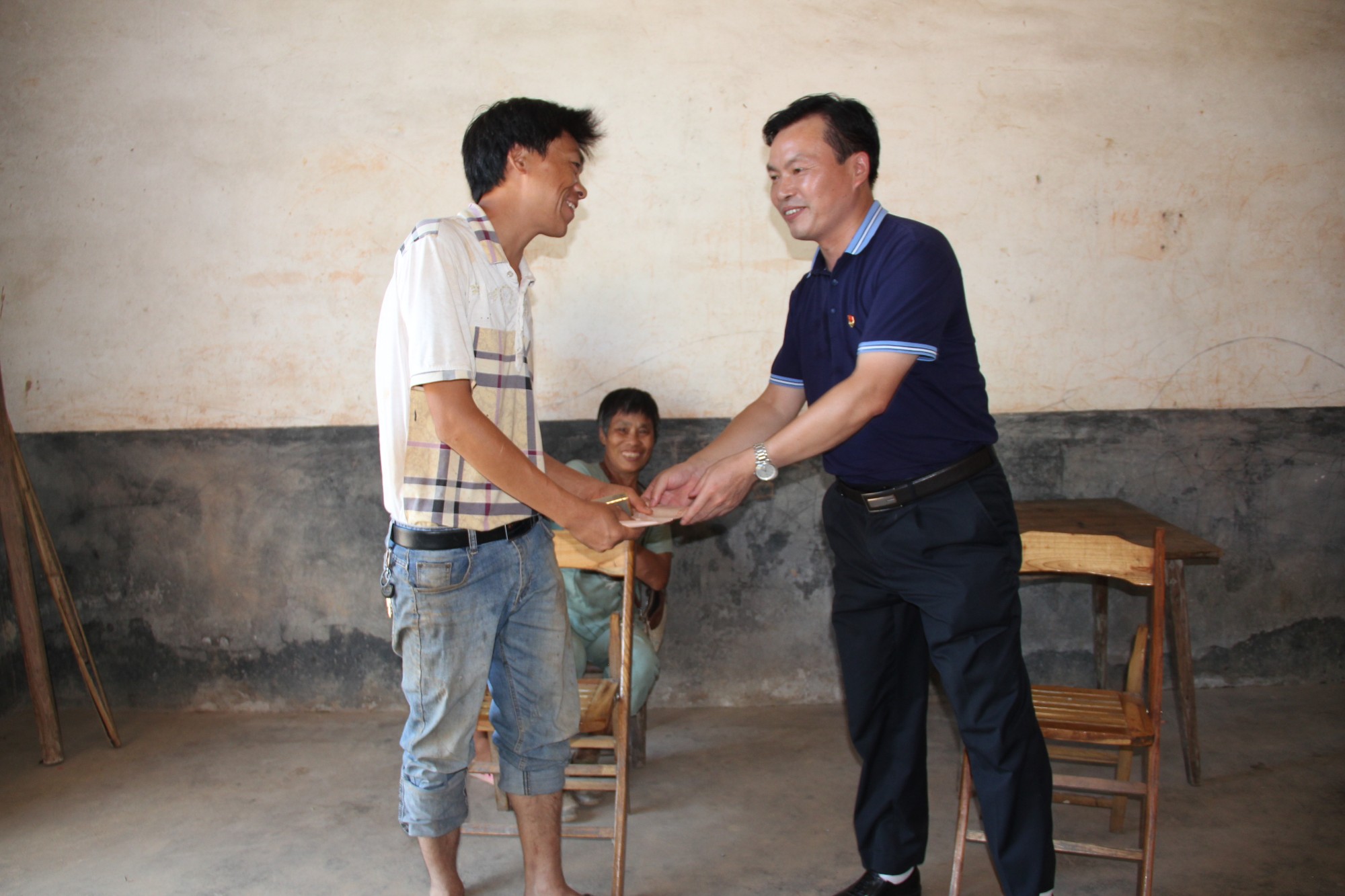 8月29日,县林业局局长彭志中到凤凰山林场福冲村看望慰问唐汉高、刘艳丰和龙国学三户贫困户。