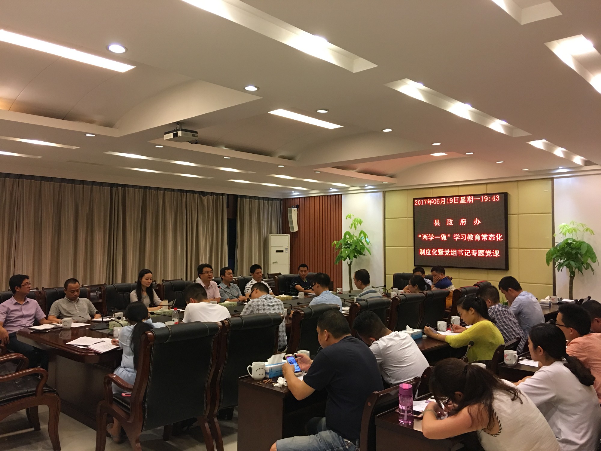 6月19日晚,县政府办党组书记谭伟军给机关党支部上党课,深入推动“两学一做”学习教育常态化制度化。