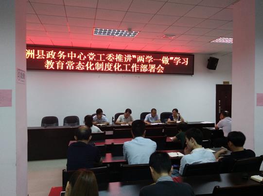 近日,县政务服务中心党工委召开推进“两学一做”学习教育常态化制度化工作部署会。会议由党工委副书记、政务中心主任罗胜利主持,副县级干部、党工委书记肖金龙对推进“两学一做”学习教育常态化制度化进行了部署安排并提出具体要求,中心全体党员干部参加会议。