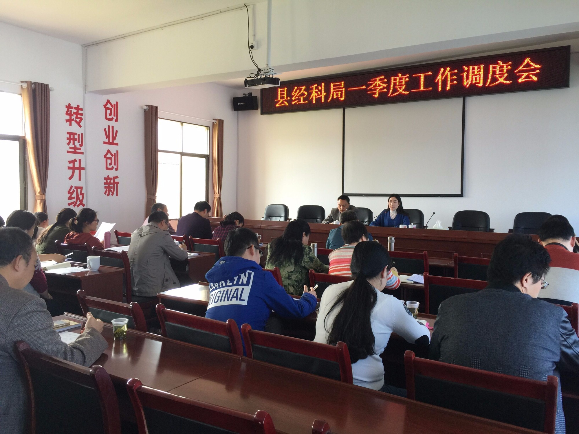 “一季度工业总产值完成上报26.9个亿,增长7.9%,增加值完成7.6个亿,增长6.2%,工业固投5千万以上的项目有31个,5千万以下的48个。”“存在的不足:企业达不到预期的产值,生产延后。”“下一步打算:尽快召开经济运行调度会,多联系、多走访乡镇、企业了解掌握情况”。各股室长纷纷发言,总结成绩的同时也分析问题所在并作出下一步打算,各分管领导就股室长的发言进行补充说明。