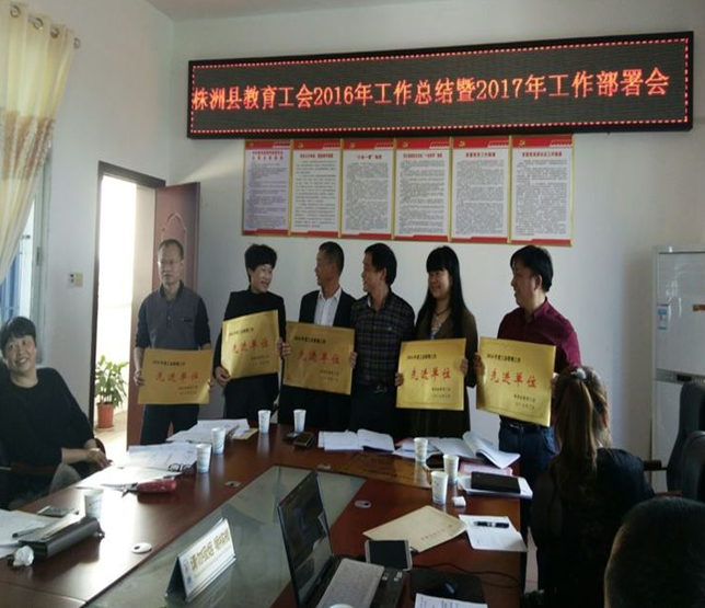 会上还表彰了县五中、县育红小学、渌口镇中心学校、南洲镇中心学校、 龙船镇中心学校等2016年县教育系统工会先进单位,表彰了渌口镇中心学校、株洲县职业中专、淦田镇中心学校、株洲县三中等2016年县教育系统工会人口计划生育综合治理工作先进单位。