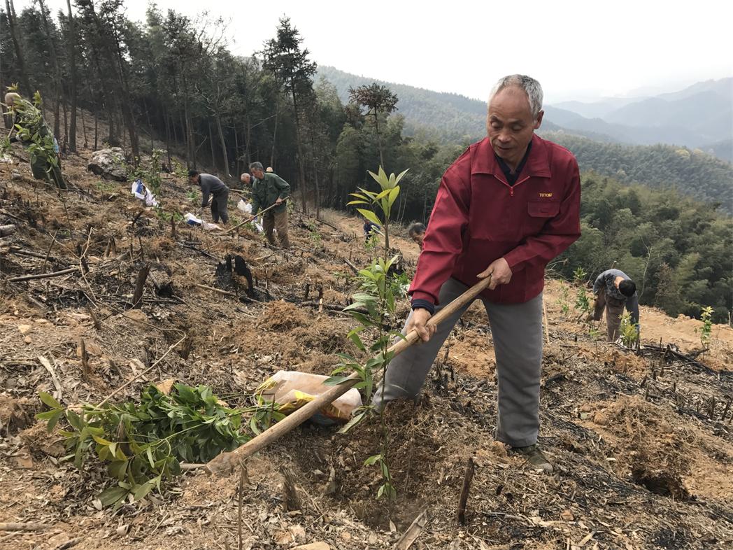 近日,天气晴朗,在株洲县军山国有林场,多名工人正加紧栽植楠木、红豆杉、榉木等珍贵树种。