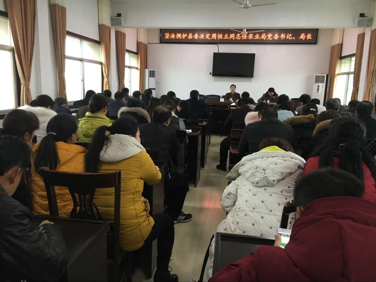 2月6日上午,县农业局召开新任领导见面会,新任党委书记、局长周恒立同志作就职讲话。党委副书记王林主持会议。
