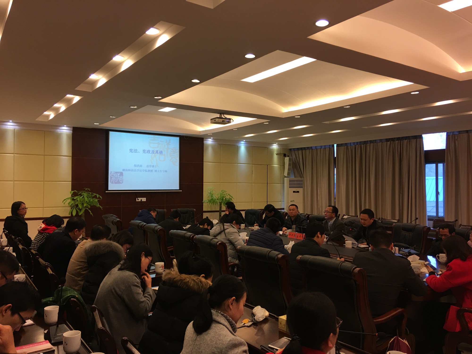 2月3日是新年第一个工作日。上午,由县政府办牵头,由县法制办具体承办,组织县政府办及其归口管理单位的全体机关干部学习宪法知识。邀请湖南师范大学法学院博士生导师倪洪涛教授讲授《宪法、宪政及其他》法律知识。县政府法制办专职副主任何皓主持会议。