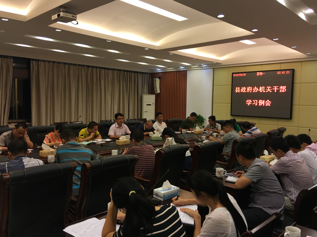 近日,县政府办召开机关干部例会传达学习贯彻县第十次党代会精神,安排部署精准扶贫、征地拆迁百日攻坚以及当前主要工作。