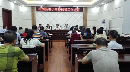6月30日,株洲县召开电子商务扶贫工作会议。县商粮局、县扶贫办有关负责人和县内20家对口企业负责人参加会议。