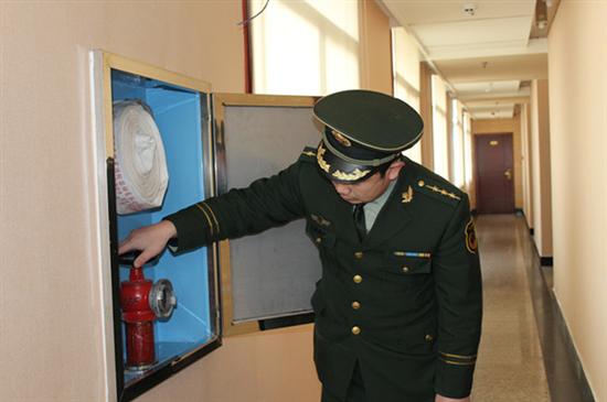 工作人员检查宾馆消防设施