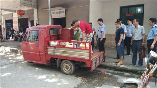 9月10日,县商务局联合仙井乡和当地派出所在对成品油市场进行专项排查整治行动。在检查过程中,执法人员发现某农家店使用铁罐、塑料壶等工具非法存储堆放散装汽油,执法人员当场依法收缴散装汽油共计400余升,并对当事人教育警告,及时消除了社会安全隐患。