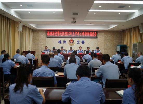 近日,株洲县交警大队召开上半年工作讲评调度会。大队领导、队属各单位副职以上民警和协警代表参加会议。政委马和平主持会议。