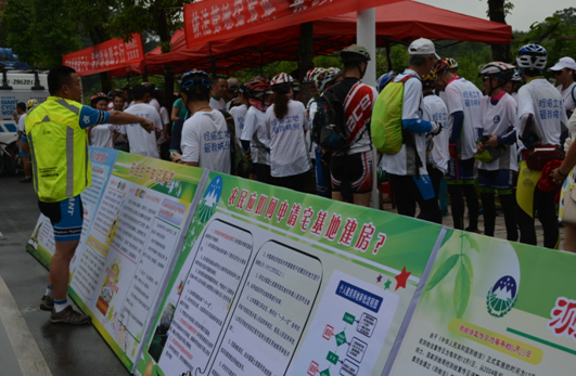 “绿野骑行”作为一种运动形式,将自行车的传统代步功能扩展到健身、休闲、娱乐的领域,真正契合了低碳生活、“两型”建设的新风尚、新理念。骑行队伍风雨无阻,从市国土资源局出发,经市区、湘江沿河堤线、天小线、航电枢纽、渌水大桥,按预定时间到达漉浦广场,一路上旌旗飘扬、声势浩荡,特别引人注目。