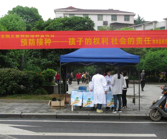 县疾控中心免疫规划科及健康教育科于4月25日在渌口镇向阳广场开展全县儿童免疫预防接种现场宣传活动,此次活动向群众面对面宣传扩大国家免疫规划政策、疫苗相关疾病预防及预防接种相关知识,并为广大群众提供免疫咨询,同时向群众发放免疫规划疫苗针对传染病防治知识宣传材料。