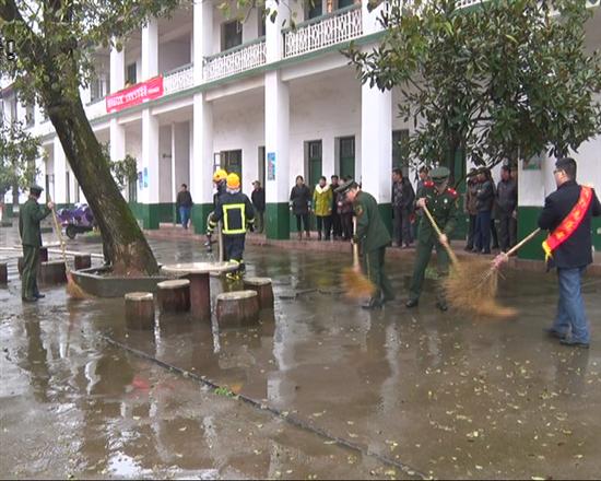 在敬老院,战士们热情地帮助老人们打扫卫生,清理垃圾,同老人们拉家常、问寒暖。