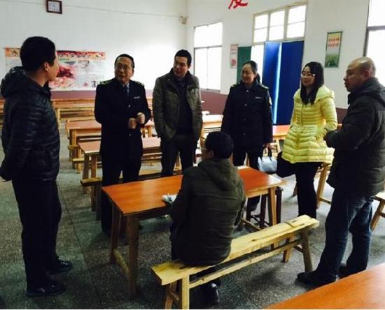 图为检查人员正在对龙潭乡中学食堂进行现场检查