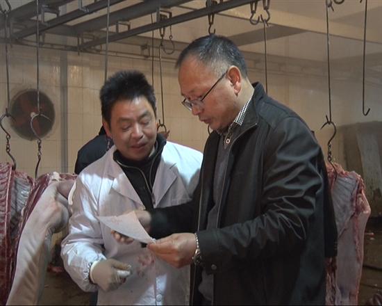 凌晨5点,执法人员来到渌口镇定点屠宰场,检疫员何顺安和同事对屠宰后悬挂起来的大块猪肉进行传染病和寄生虫病的检疫。他告诉记者,这里每天屠宰近40头生猪,生猪进场送宰前,畜主需携带产地检疫合格证或出县境动物检疫合格证明、动物及动物产品运载工具消毒证明,经查验证明合格、畜体检查健康,才能允许送宰。