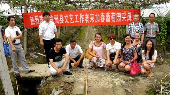继松西子社区、华新水泥厂、军山林场等地采风后。株洲县文联又组织下属10个协会主席以及部分文艺工作者共13余人,到株洲县加春葡萄园采风,并对各协会当前工作进行了安排部署。17年来,易加春从一名农民工成长为拥有6家标准化葡萄园,占地168亩的加春葡萄有限公司的老总。自己富了还不忘带领乡亲们一起致富。大家被易加春同志自主创业、勤劳致富、带领乡亲们一起致富的生动事例深深感动。采风结束后,共创作文艺作品60余篇(幅),其中不乏精品力作。