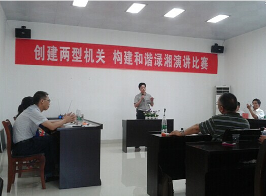 为积极推进“两型”示范创建工作,不断提升机关服务水平,营造机关和谐、奋发向上的氛围。近日,株洲县畜牧兽医水产局工会组织机关干部举办了一场以“创建两型机关 构建和谐渌湘”为主题的演讲比赛。县委组织部桂林同志、县委宣传部黄娟同志、县总工会吴雪同志、县两型办颜志雄同志等领导莅临现场指导。