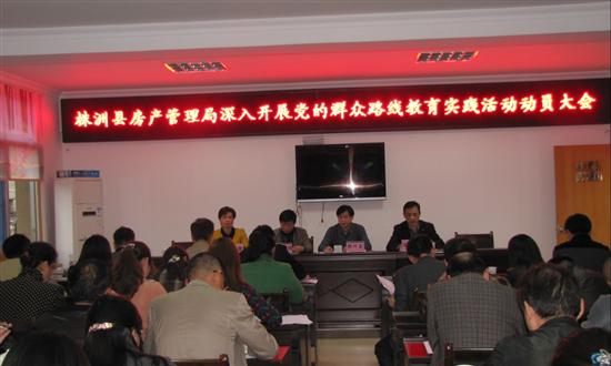 近日,县房产管理局召开了党的群众路线教育实践活动动员大会。局机关全体党员干部职工参加会议。局党总支书记张慧霞主持会议,局党总支副书记、局长龙东明作动员报告,县人大副主任郭兴龙、县委第十一督导组领导到会指导并讲话。