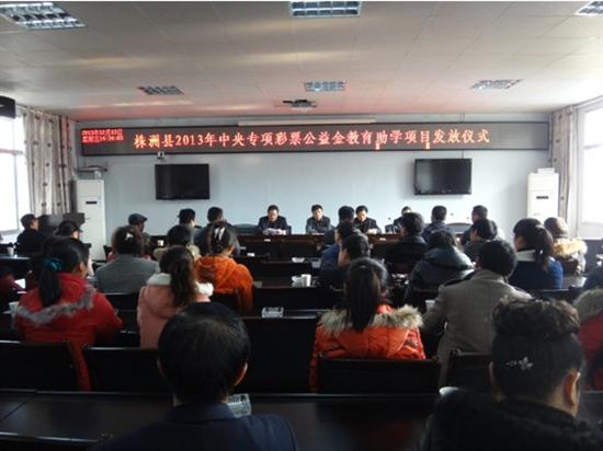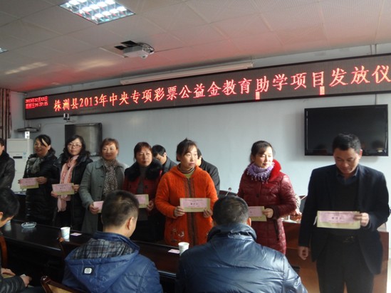 株洲县2013年中央专项彩票公益金教育助学发放仪式现场